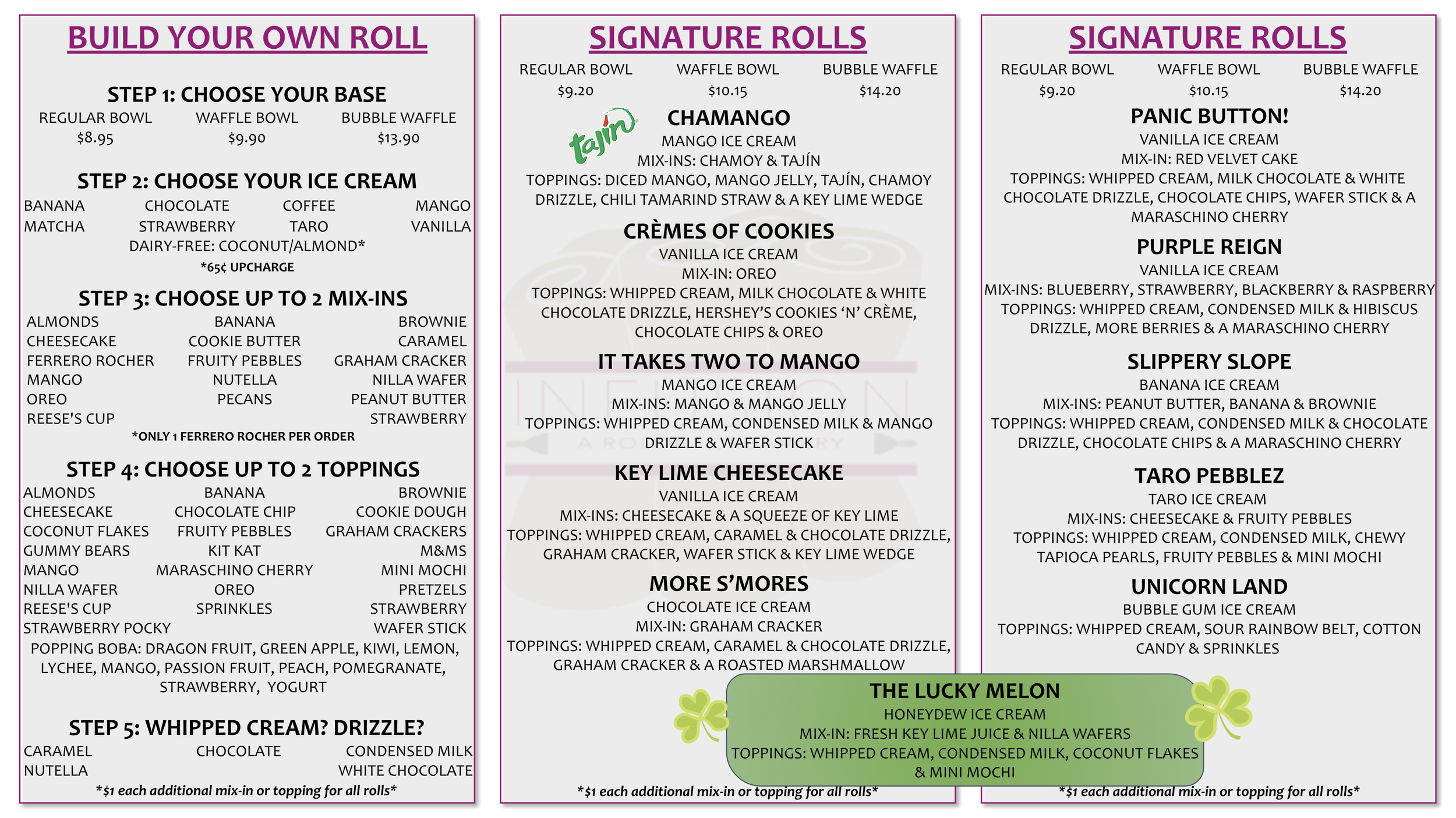 ROLLED ICE CREAM MENU